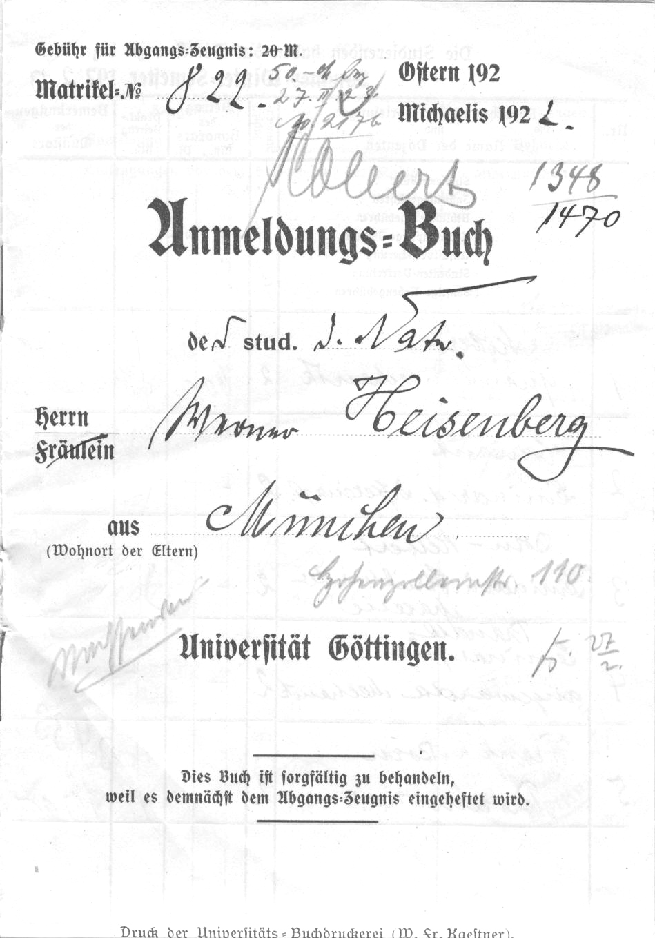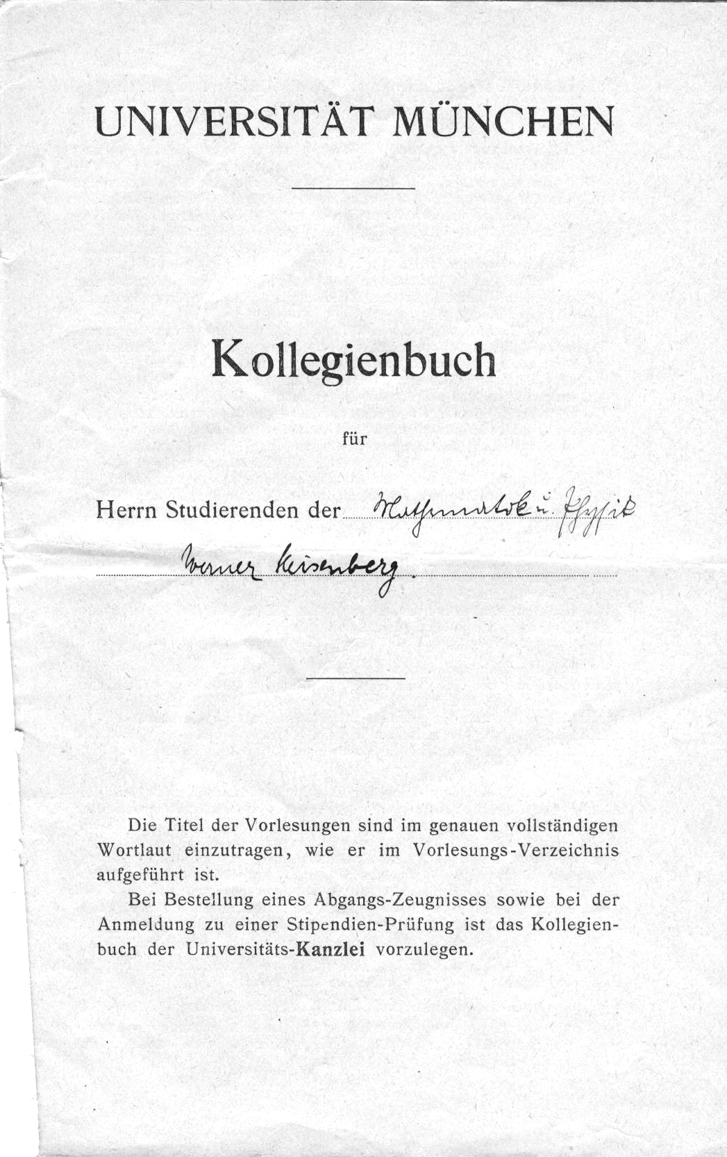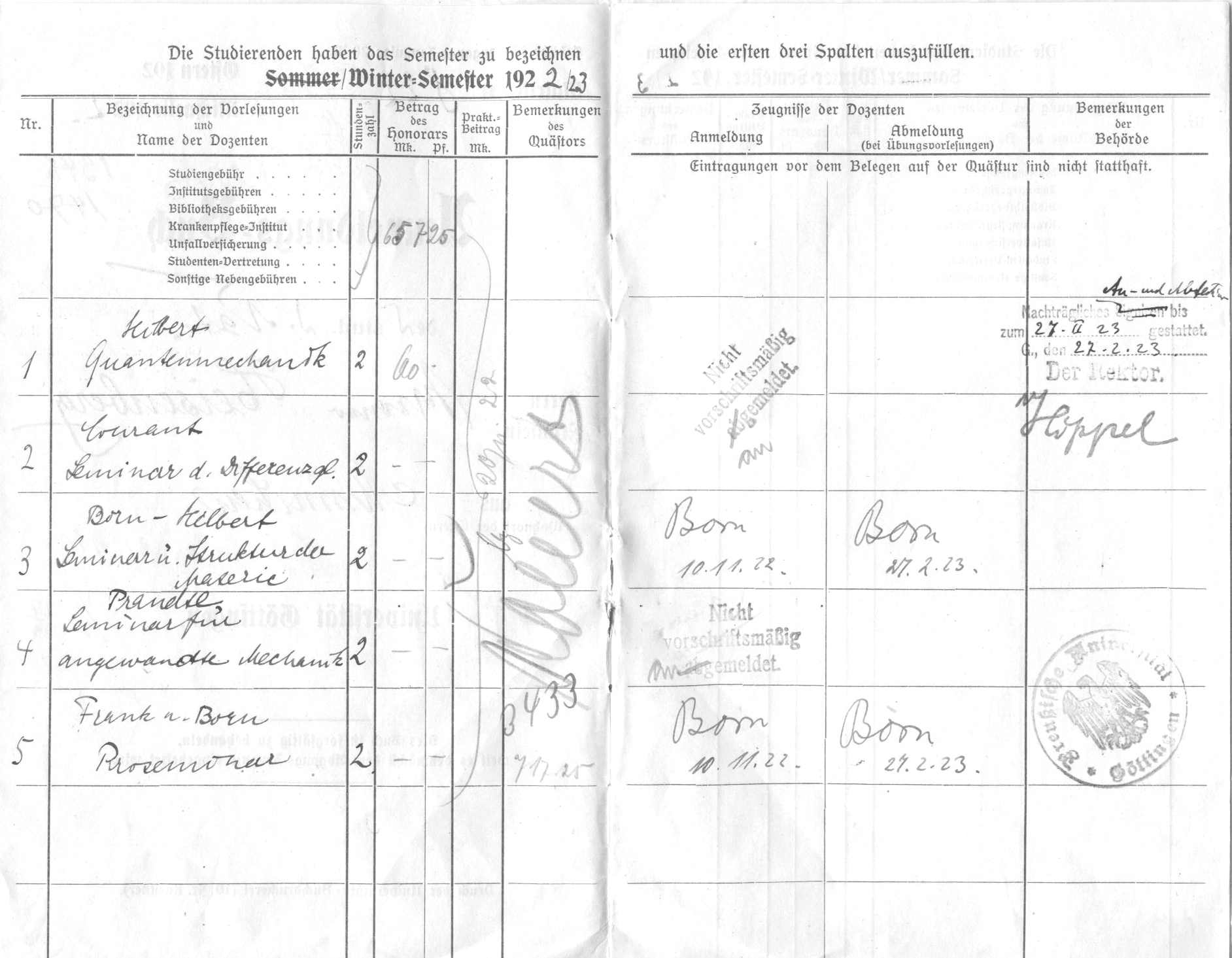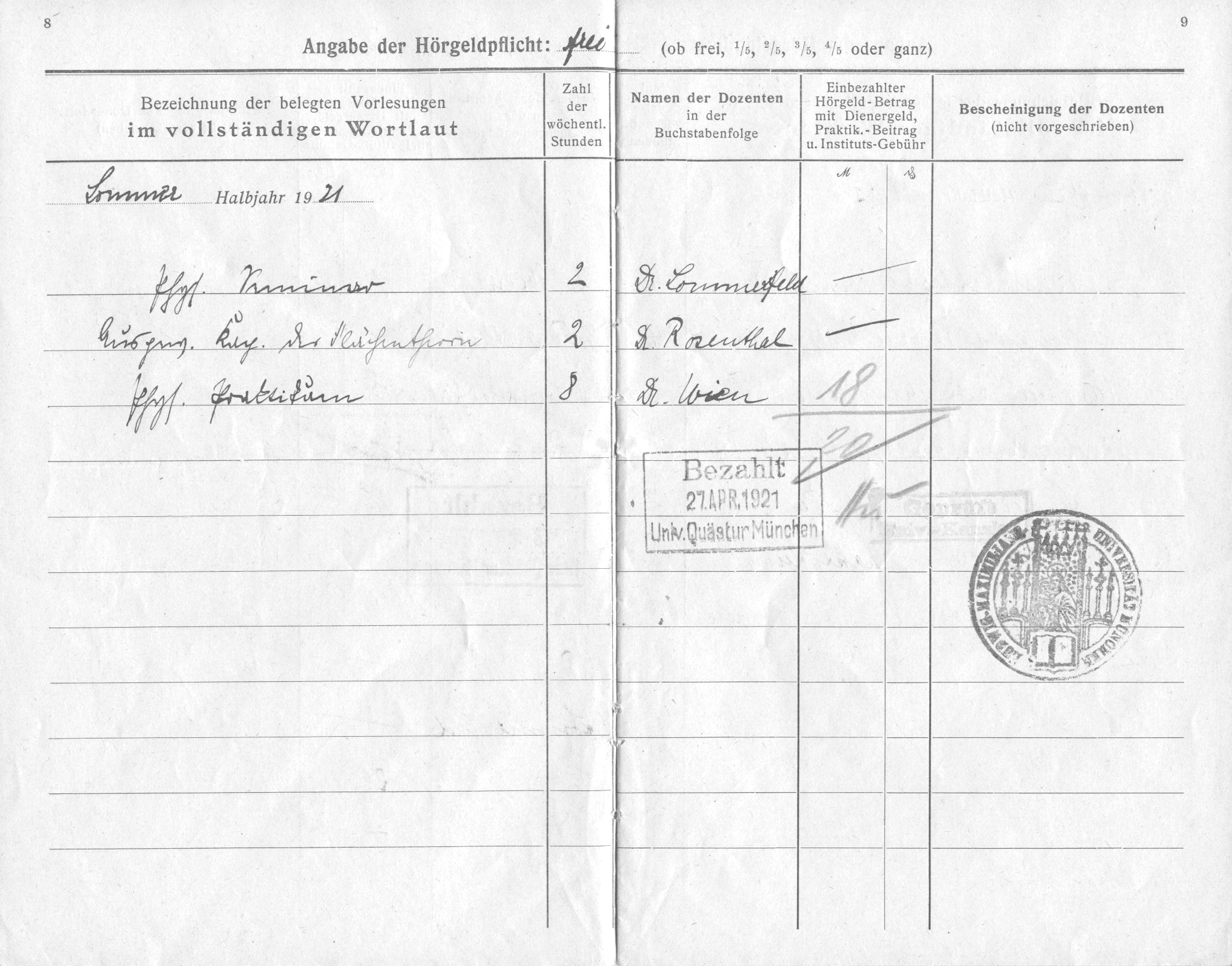 "Theor. physics seminar" (Sommerfeld); "Physics lab" (Wien); "Theory of real functions"